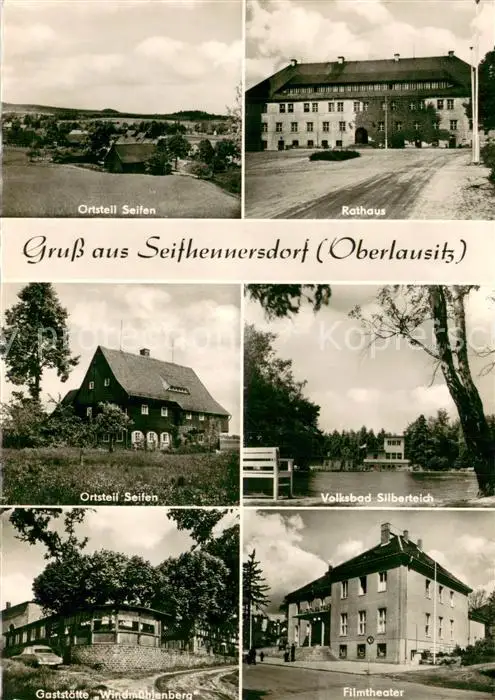 AK / Ansichtskarte Seifhennersdorf Rathaus Volksbad Silberteich Gaststaette Windmuehlenberg Filmtheater Ortsteil Seifen Seifhennersdorf