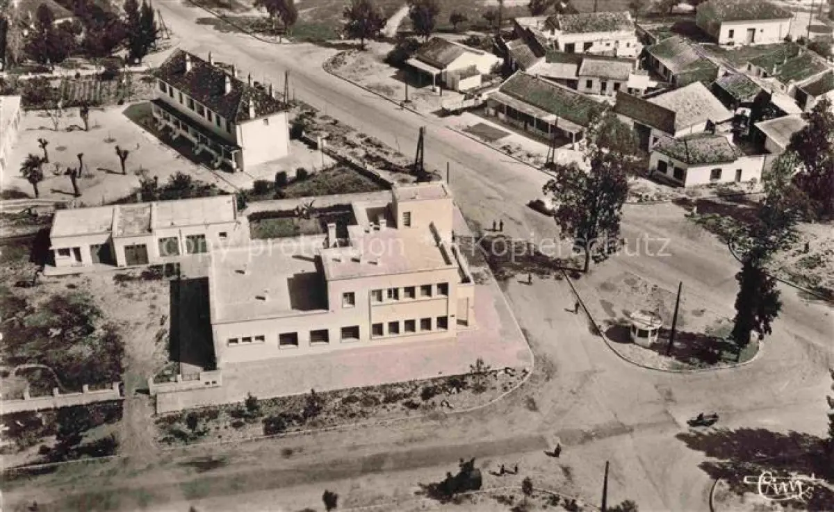14099598 Souk-el-Arba Tunisie La Poste Route de Meknés Boulevard de la Gare vue aérienne postalisch gelaufen Fliegeraufnahme Erhaltung siehe scans [FriedD77] Fliegeraufnahme old postcard Frie Katcode 18520