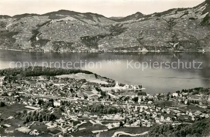 AK / Ansichtskarte Spiez_Thunersee_BE Fliegeraufnahme Spiez_Thunersee_BE