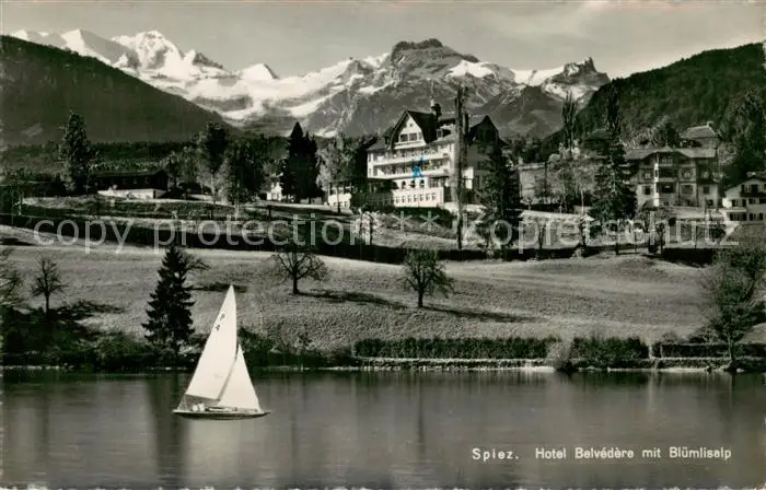 AK / Ansichtskarte Spiez_Thunersee_BE Hotel Belvedere mit Bluemlisalp Spiez_Thunersee_BE