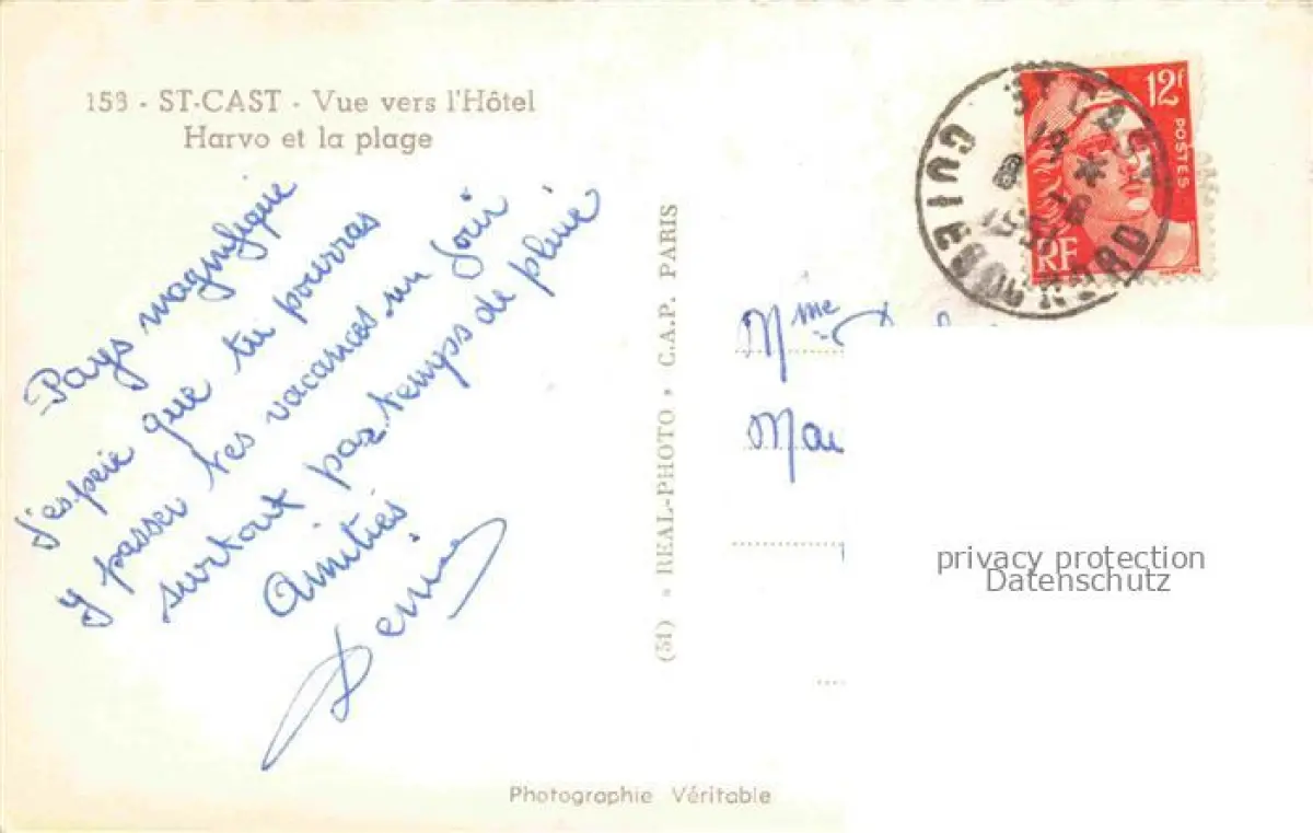 14115200 St-Cast-le-Guildo 22 Cotes-d Armor Vue vers l'Hotel Harvo et la plage postalisch gelaufen Erhaltung siehe scans [WerneD78] carte postale Wern Katcode 11170022122282