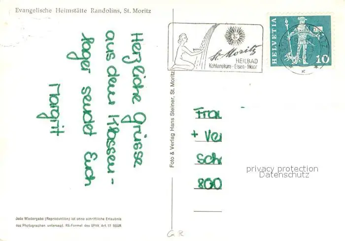 St_Moritz_GR Ev Heimstaette Randolins St_Moritz_GR postalisch gelaufen 1967 Erhaltung siehe scans [WerneD78] WernPID7