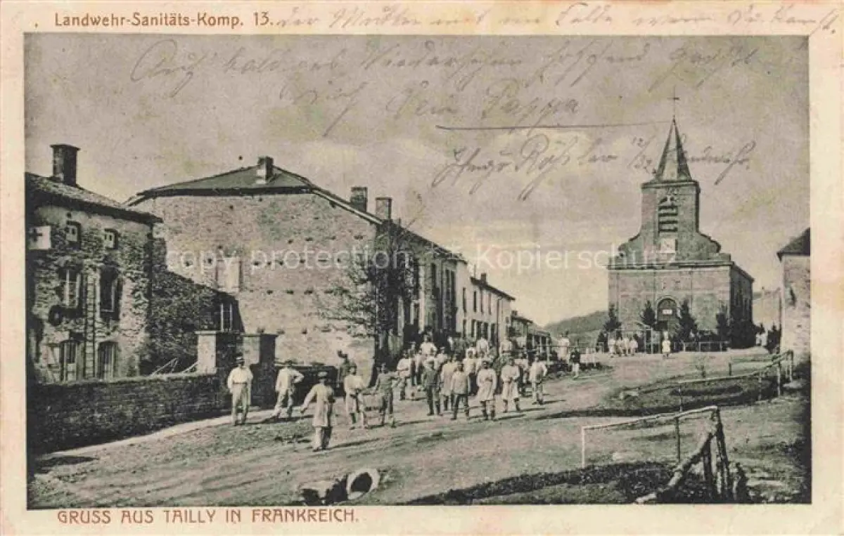 14116368 Tailly AMIENS 80 Somme Landwehr-Sanitaets-Kompanie 13 Blick zur Kirche postalisch gelaufen Feldpoststation (Stempel) Erhaltung siehe scans [FriedD77] Feldpoststation (Stempel) alte Postkarte Frie Katcode 11170080280744