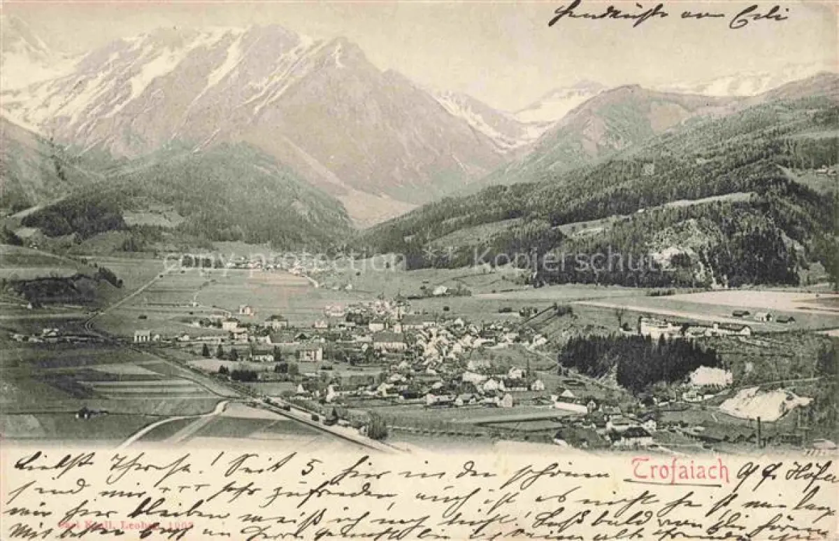 14095285 Trofaiach Steiermark AT Gesamtansicht mit Alpenpanorama postalisch gelaufen Erhaltung siehe scans [FriedD77] alte Postkarte Frie Katcode 11390223061117