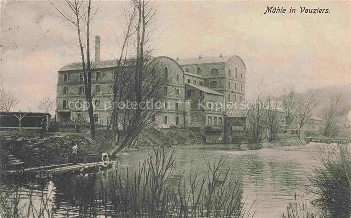 alte Postkarte VOUZIERS Aisne 08 Ardennes Partie am Fluss Muehle postalisch gelaufen Feldpostexpedition (Stempel) Erhaltung siehe scans [FriedD77]