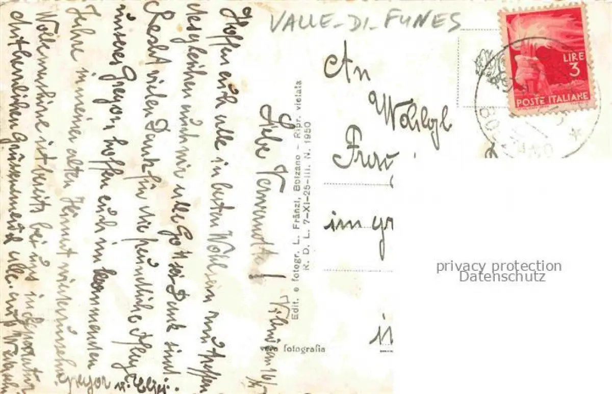 74107547 Valle di Funes Val di Funes Dolomiti IT Panorama San Pietro verso Le Odle postalisch gelaufen Erhaltung siehe scans [FriedD77] old postcard Frie Katcode 11240