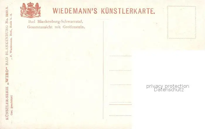 Verlag_Wiedemann_WIRO_Nr. 2480 A Bad Blankenburg-Schwarzatal Greifenstein Verlag_Wiedemann_WIRO_Nr. postalisch nicht gelaufen bis 1920 Erhaltung siehe scans [PaolaD17] PaolPID1