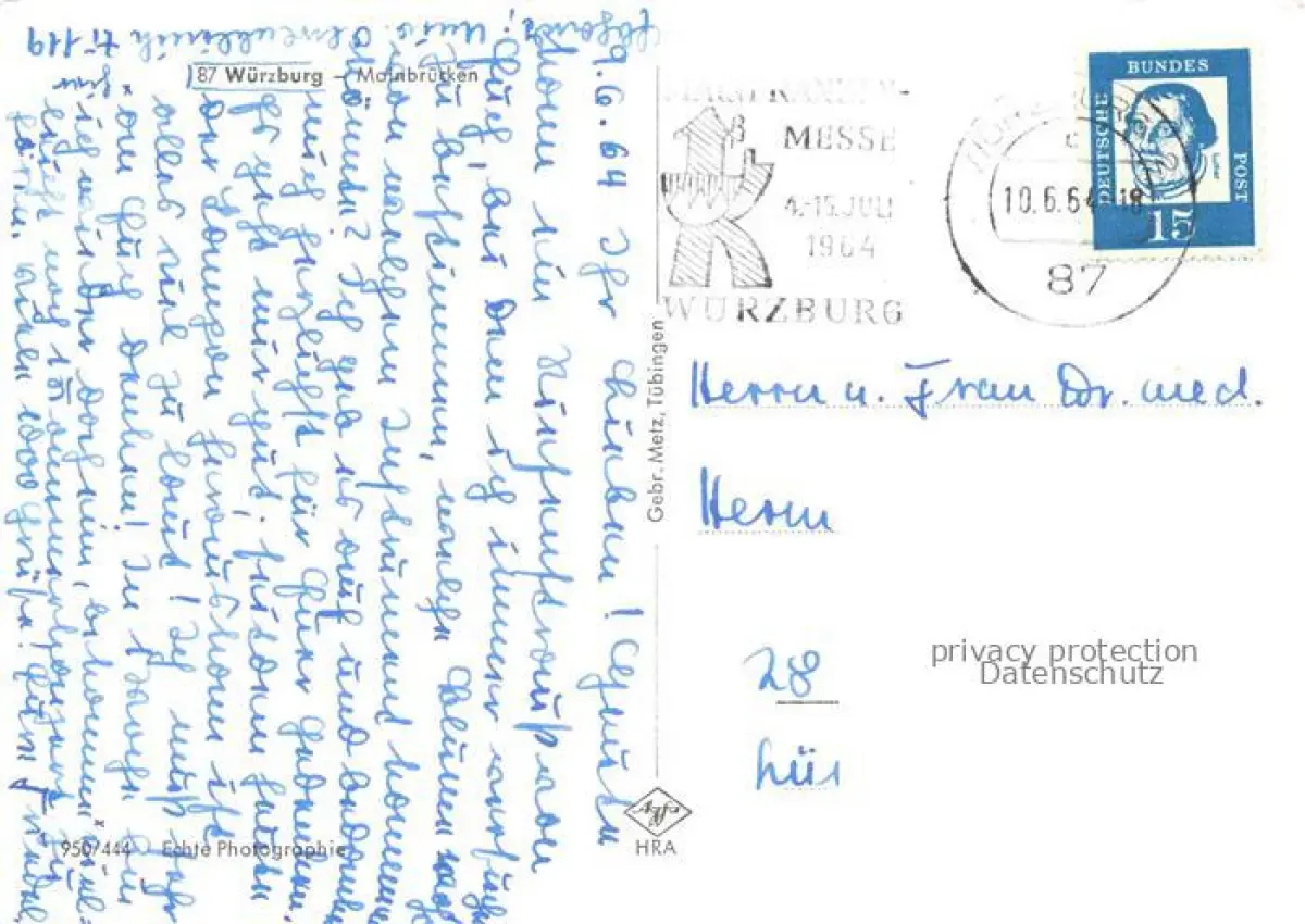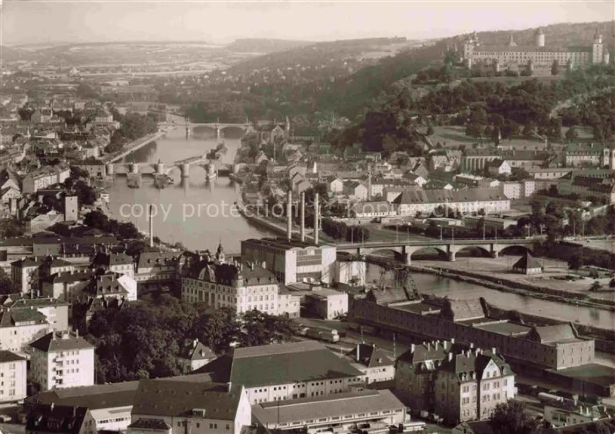 alte Postkarte WueRZBURG Bayern Panorama mit Mainbruecken Festung Marienberg postalisch gelaufen Erhaltung siehe scans [FriedD77]