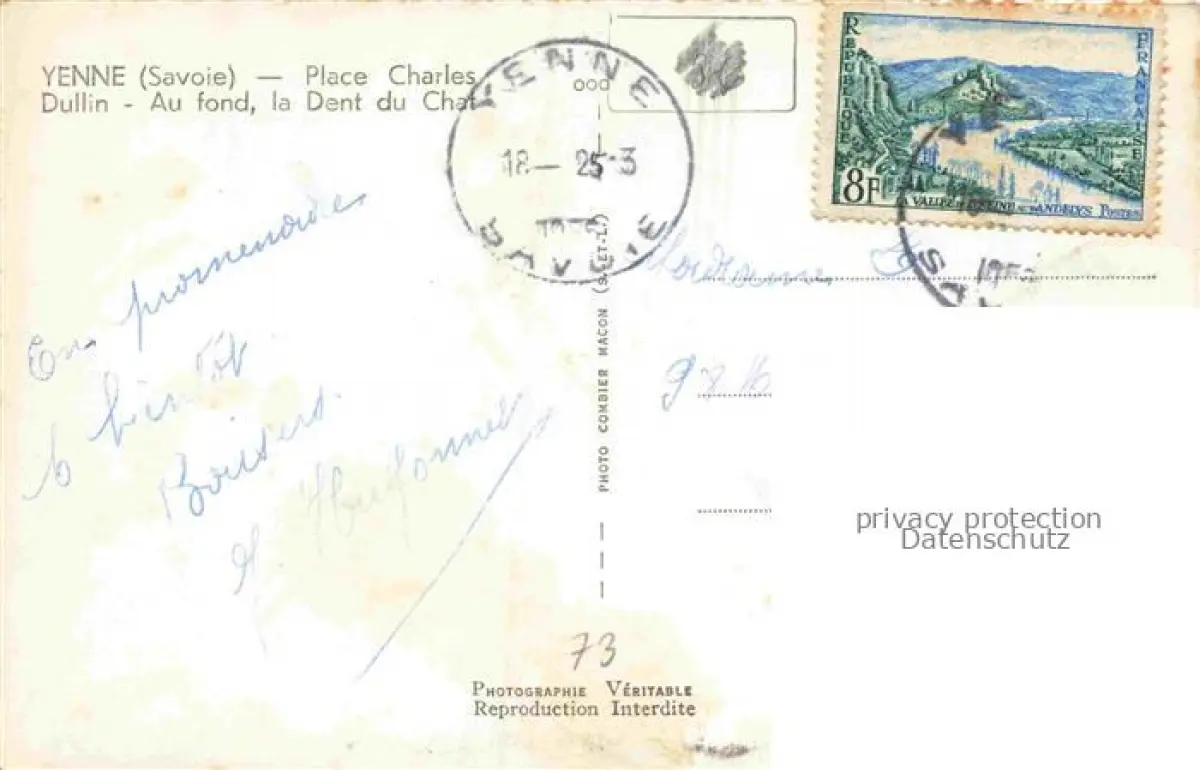14106102 Yenne Chambery 73 Savoie Place Charles Dullin au fond la Dent du Chat Alpes postalisch gelaufen Erhaltung siehe scans [FriedD77] carte postale Frie Katcode 11170073273330