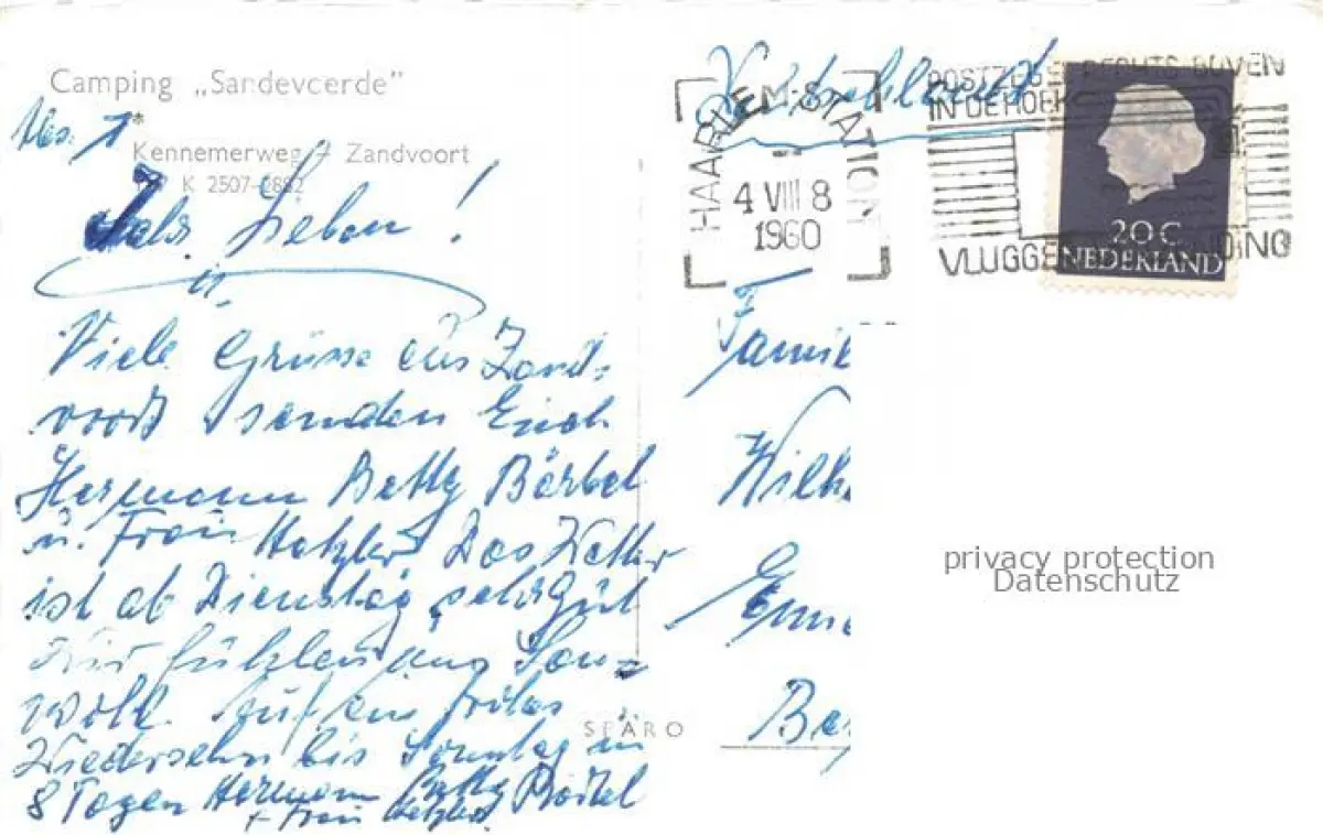 old postcard ZANDVOORT-AAN-ZEE Noord Holland NL Kampeerterrein Sandevoerde postalisch gelaufen Erhaltung siehe scans [FriedD77]