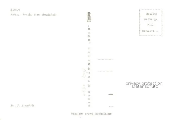 Zagan Ratusz Rynek Plac Slowianski Zagan postalisch nicht gelaufen 1970 Erhaltung siehe scans [FriedD77] Frierer