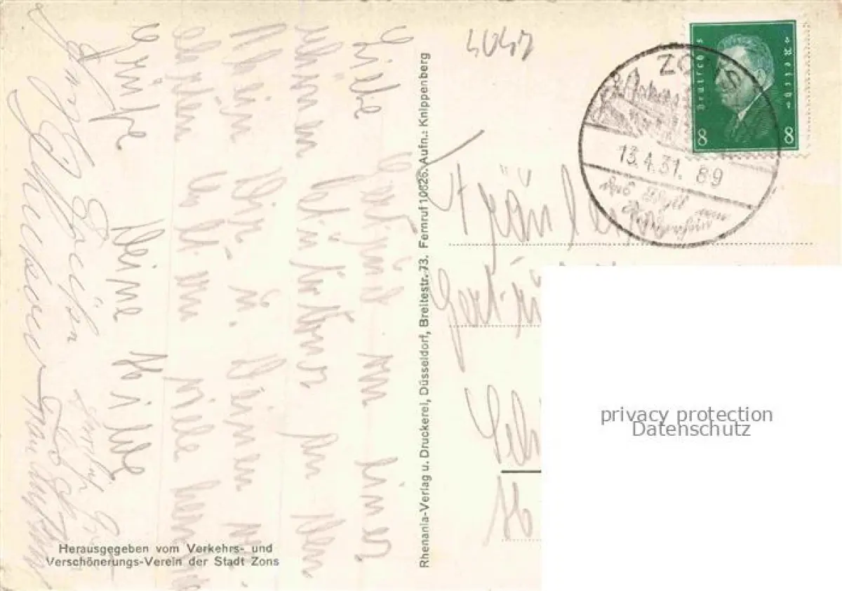 alte Postkarte Zons Rhein Zollturm postalisch gelaufen Erhaltung siehe scans [WerneD78]