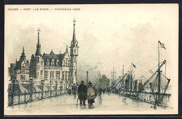 AK Anvers, Port, Le Steen, Promenoir nord, Hafen