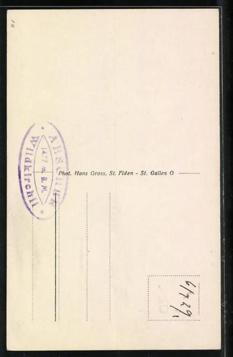 Personenbezogene Daten auf der Rückseite der Karte wurden durch blauen Textmarker unkenntlich gemacht. Die blauen Stellen sind auf die Vorderseite durchgeweicht und wirken sich negativ auf das Postkartenfoto aus