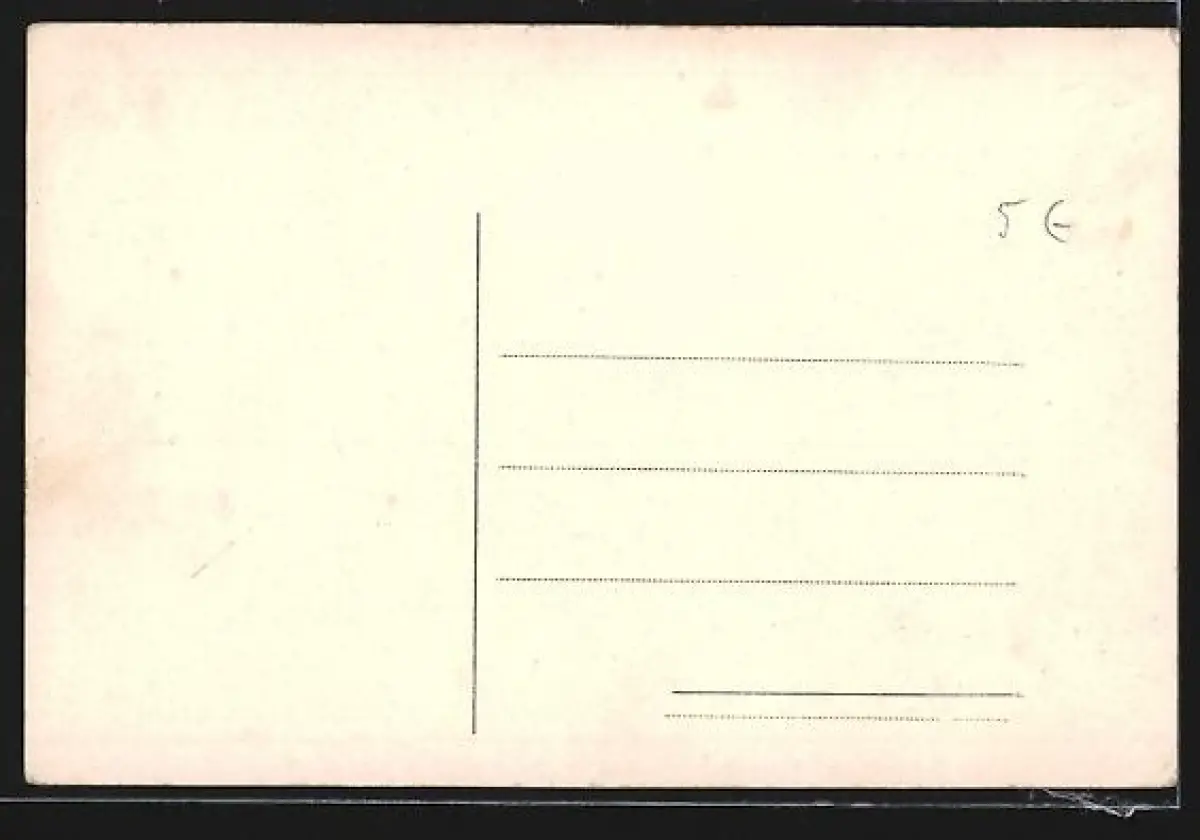 Personenbezogene Daten auf der Rückseite der Karte wurden durch blauen Textmarker unkenntlich gemacht. Die blauen Stellen sind auf die Vorderseite durchgeweicht und wirken sich negativ auf das Postkartenfoto aus