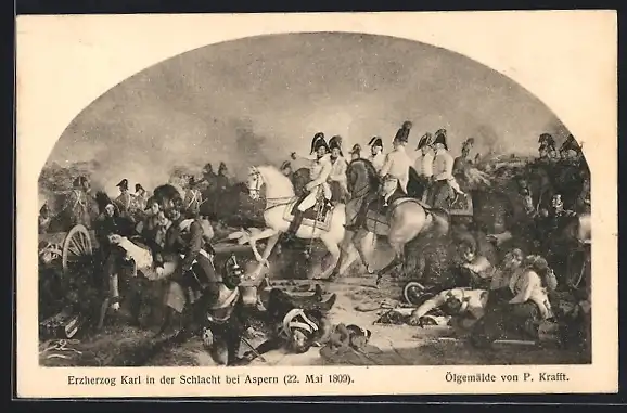 AK Aspern, Erzherzog-Karl-Ausstellung 1909, Erzherzog Karl in der Schlacht bei Aspern 1809