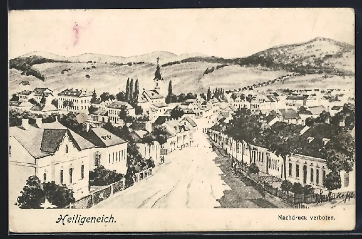 AK Atzenbrugg, Heiligeneich, Strassenpartie mit Blick zur Kirche