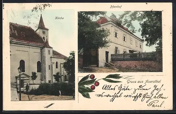 AK Auersthal, Ansichten von Kirche und Pfarrhof