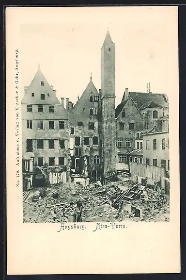AK Augsburg, Afra-Turm mit Trümmerberg