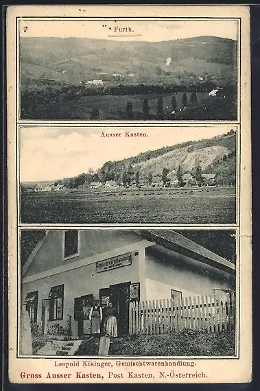 AK Ausser Kasten /N.-Österreich, Gemischtwarenhandlung Leopold Kikinger, Ortsansicht