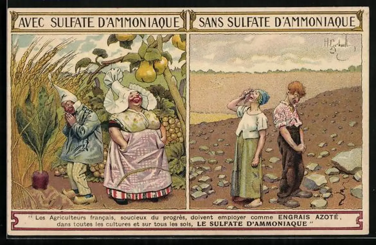 AK Avec & Sans Sulfate d`Ammoniaque, Gute und schlechte Ernte, Reklame