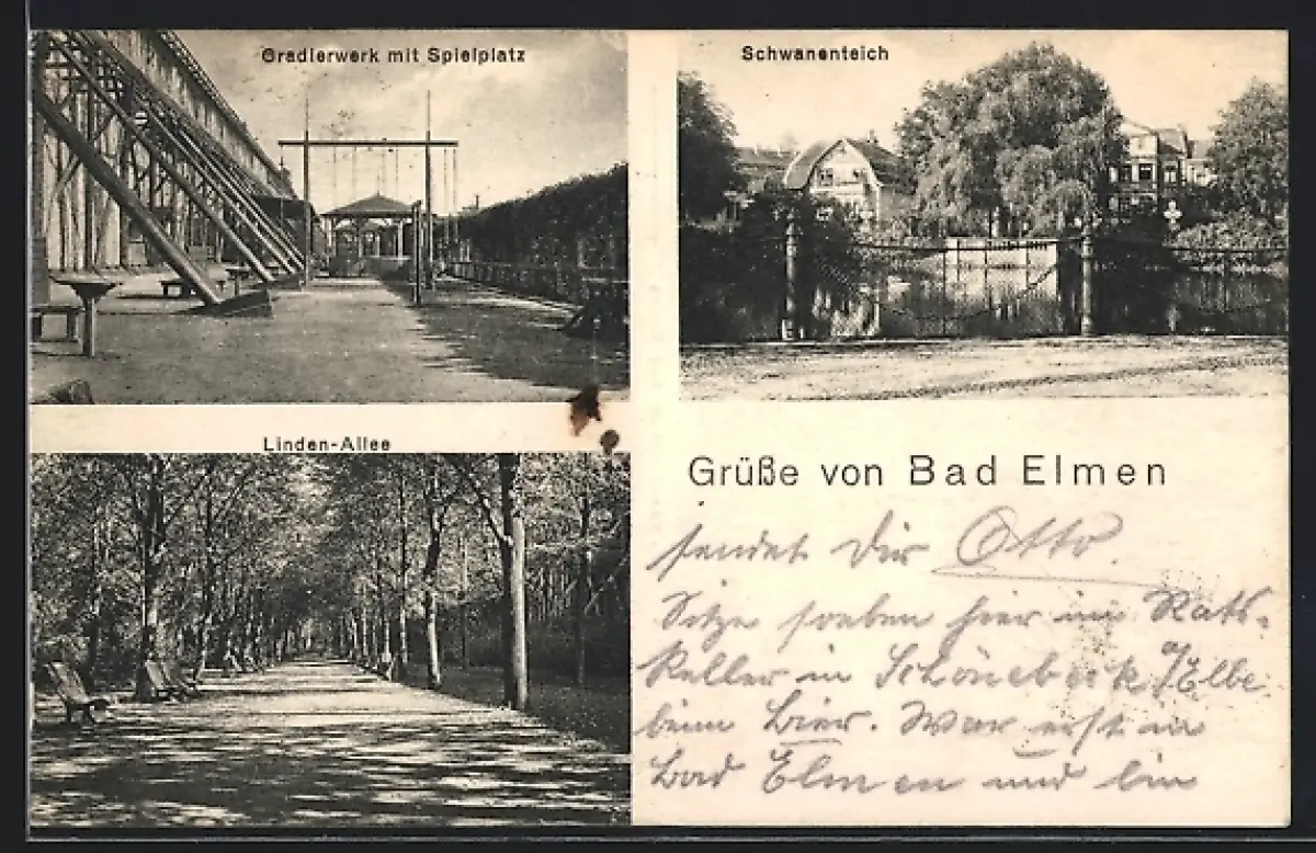 AK Bad Elmen, Gradierwerk mit Spielplatz, Schwanenteich, Linden-Allee