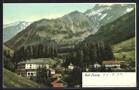 AK Bad Fusch, Ortsansicht mit Bergpanorama