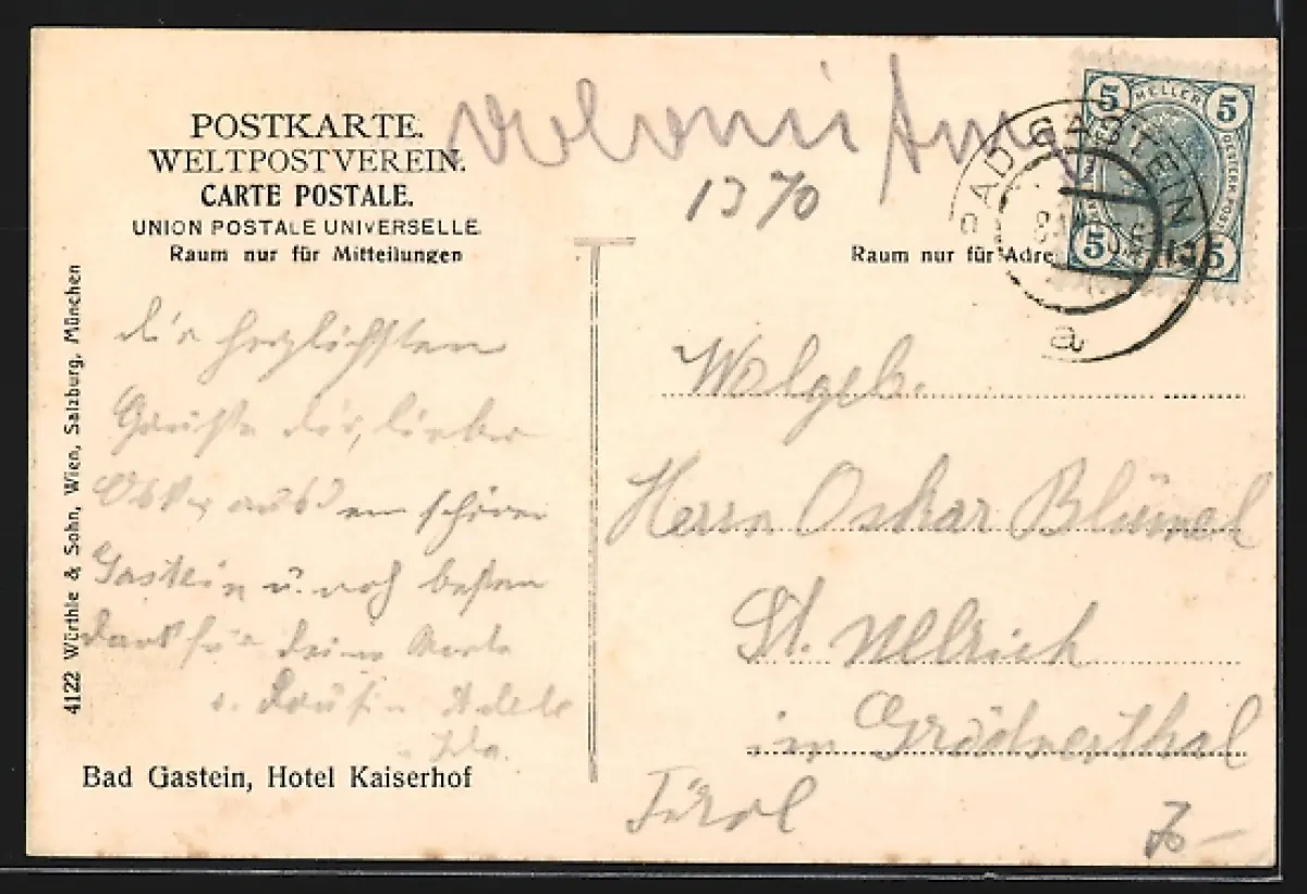 AK Bad Gastein, Blick zum Hotel Kaiserhof
