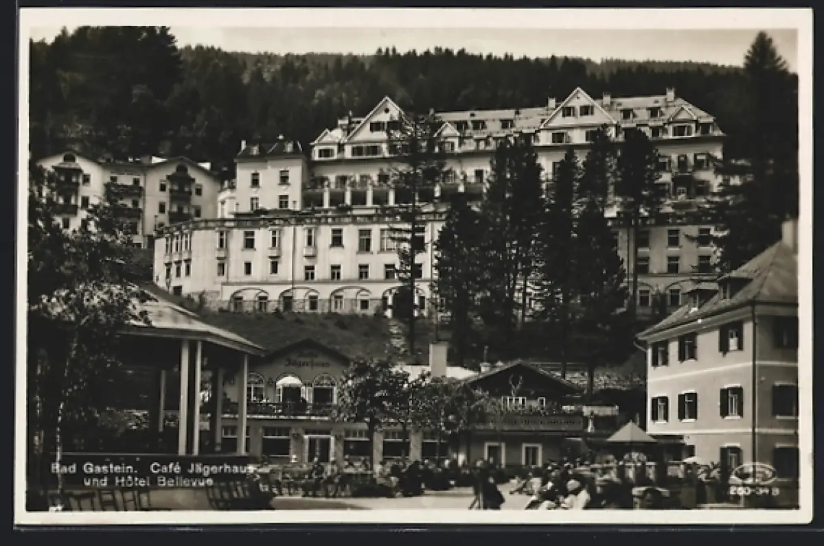 AK Bad Gastein, Café Jägerhaus und Hotel Bellevue