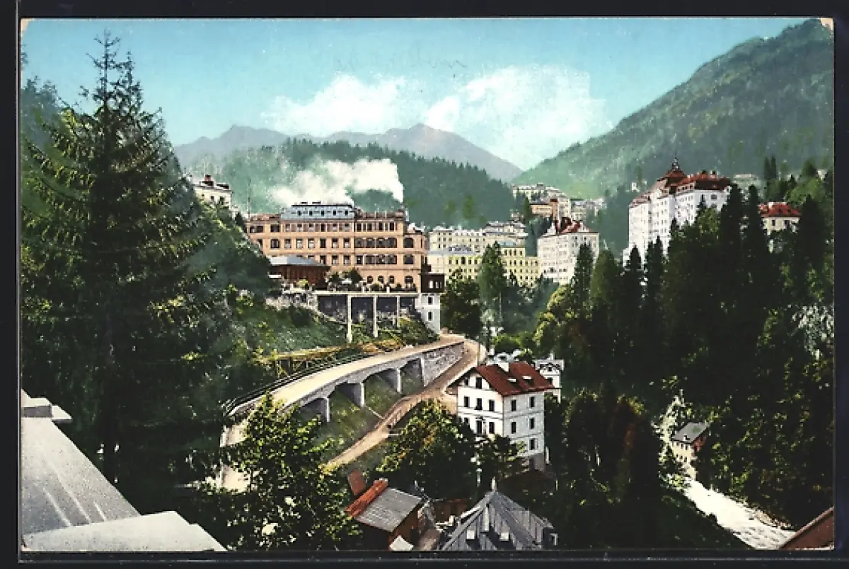 AK Bad Gastein /Tauernbahn, Panorama mit Hotel