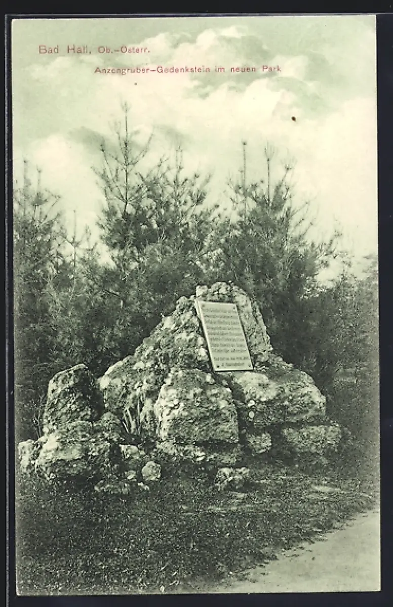 AK Bad Hall /Ob.-Österr., Anzengruber-Gedenkstein im neuen Park
