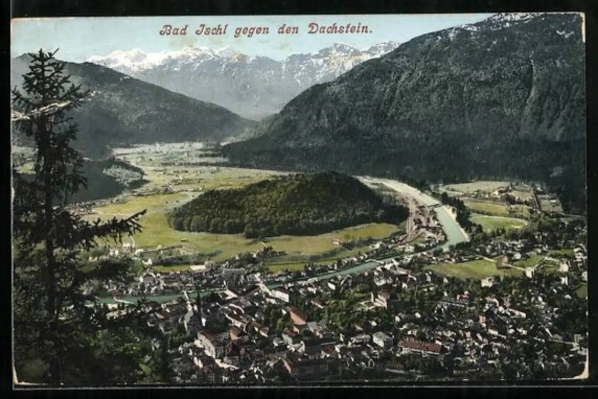 AK Bad Ischl, Panorama mit Stadt und Dachstein