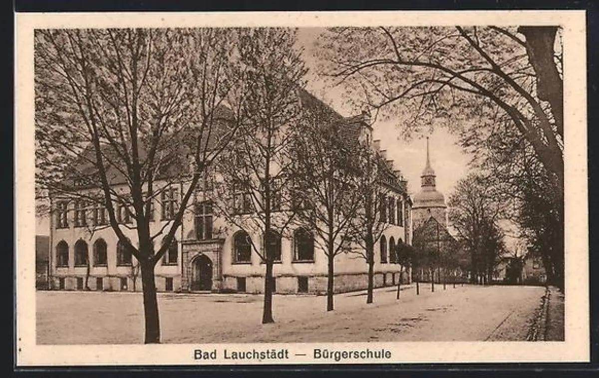 AK Bad Lauchstädt, Bürgerschule mit Strassenpartie
