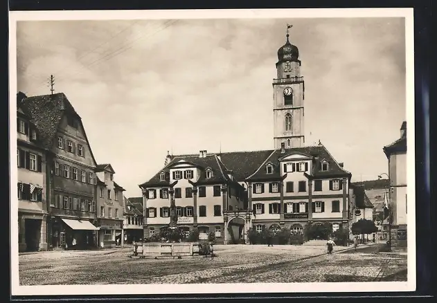 AK Bad Mergentheim, Marktplatz mit Denkmal