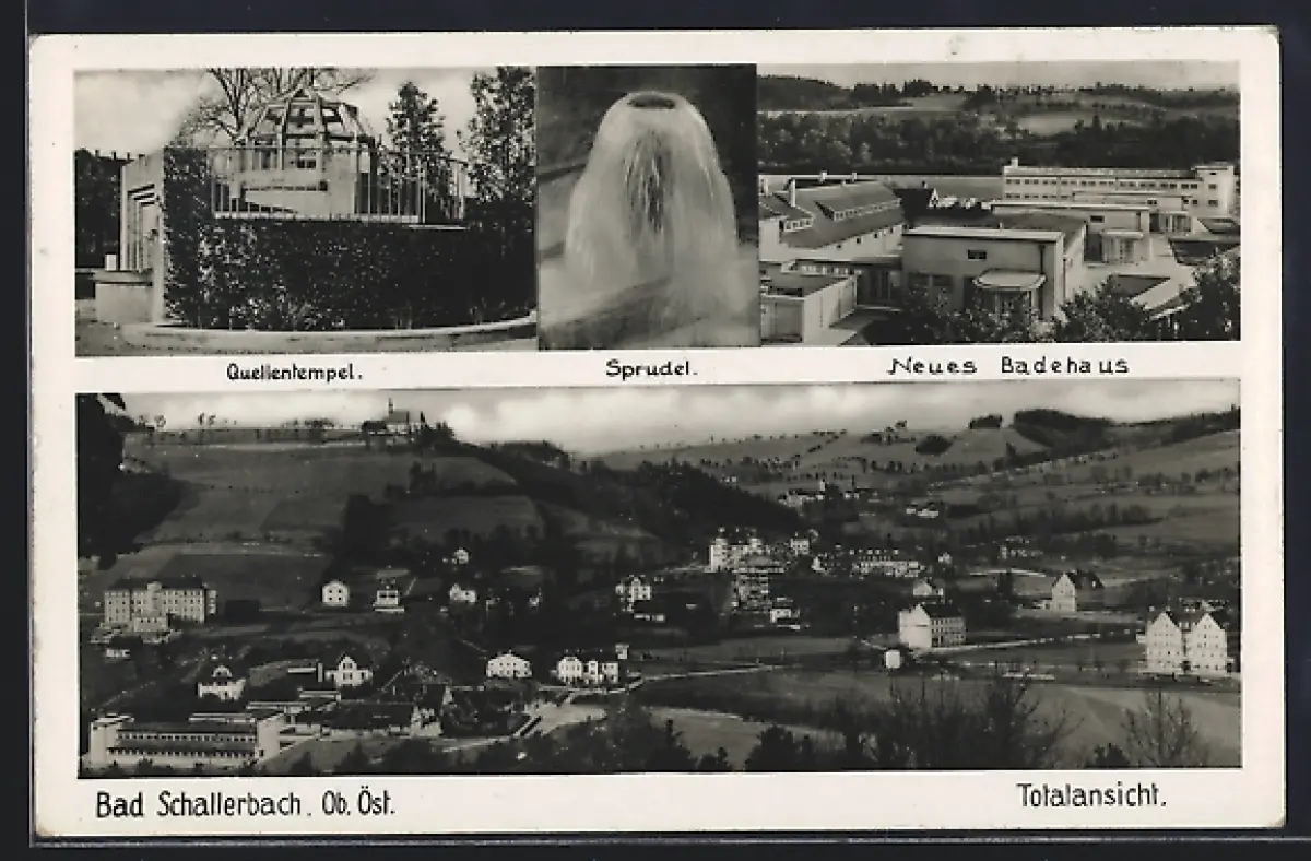 AK Bad Schallerbach, Neues Badehaus, Quellentempel, Sprudel, Totalansicht