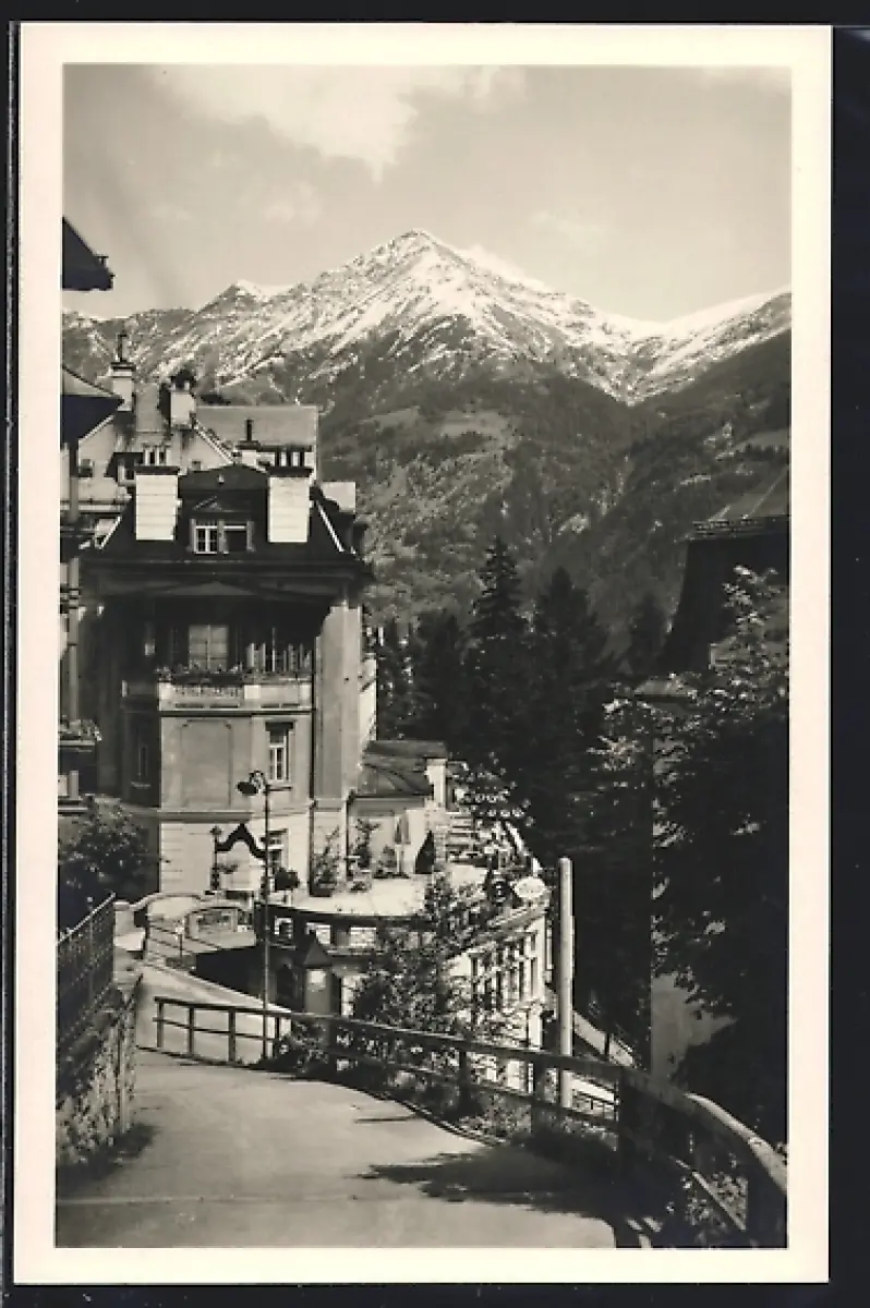 AK Badgastein, Hotel Bellevue-Terrasse gegen den Gamskarkogel