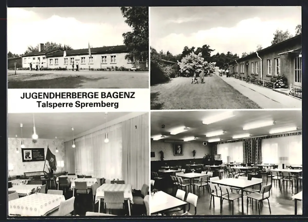 AK Bagenz /Kr. Spremberg, Talsperre, Jugendherberge, Innenansichten Klubraum und Speiseraum