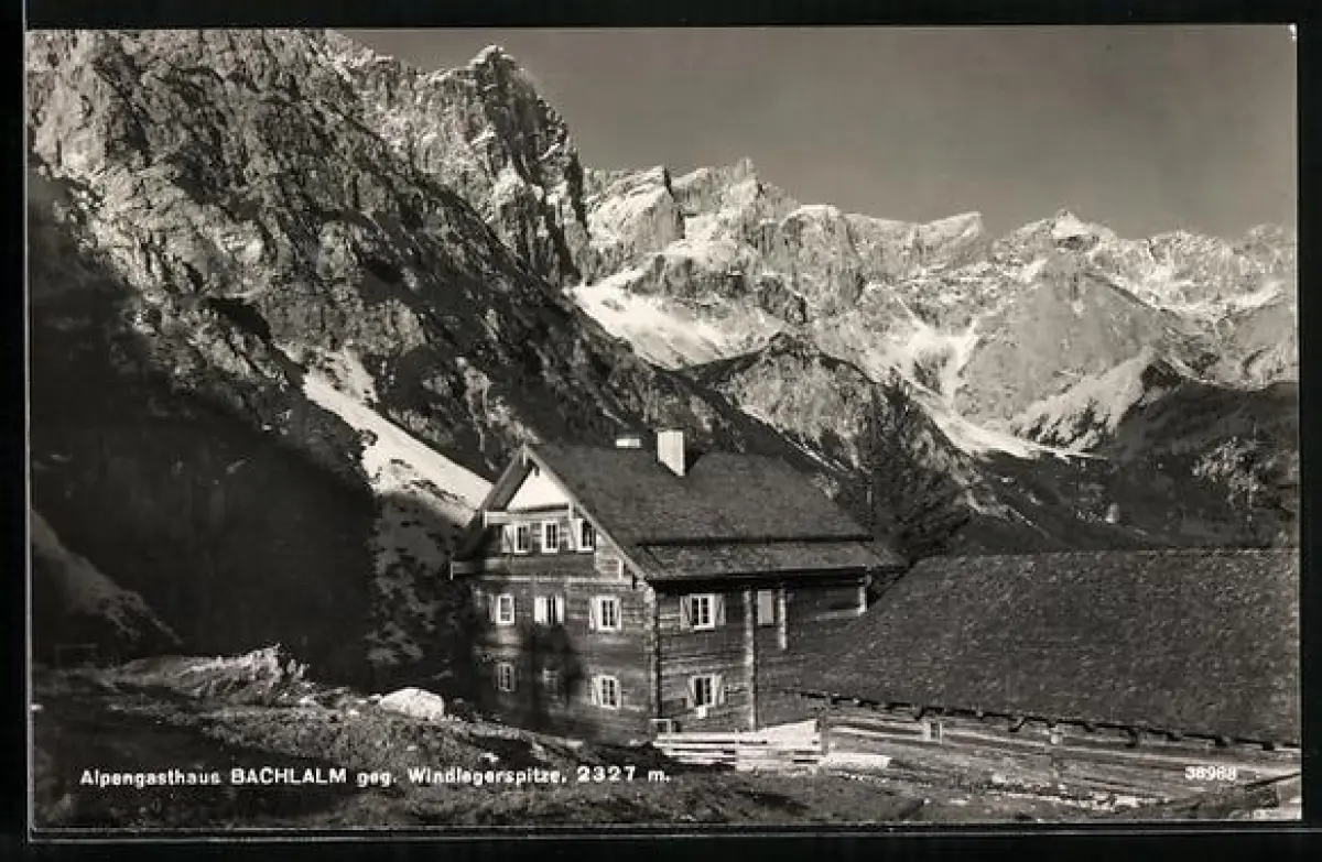 AK Balchalm, Berghütte gegen Windlegerspitze gesehen
