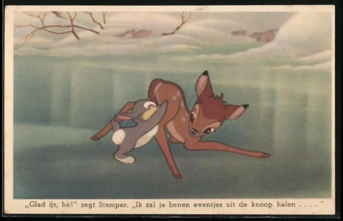 AK Bambi und Klopfer schlittern über das Eis, Comic