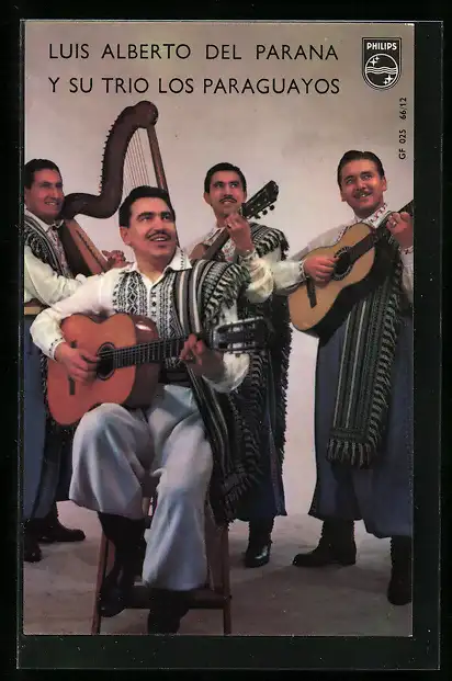 AK Band Luis Alberto del Parana y su trio Los Paraguayo posieren mit Instrumenten