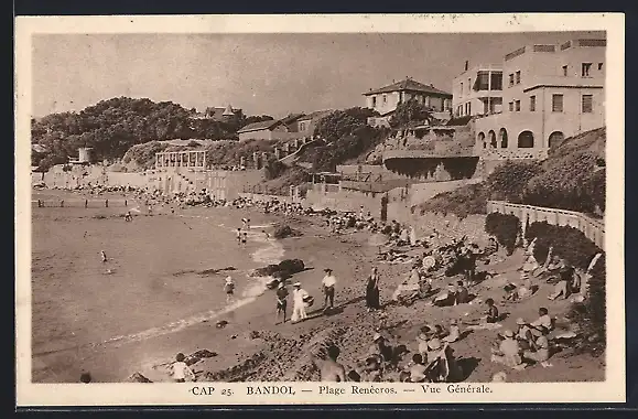 AK Bandol, Plage Renécros, Vue Générale