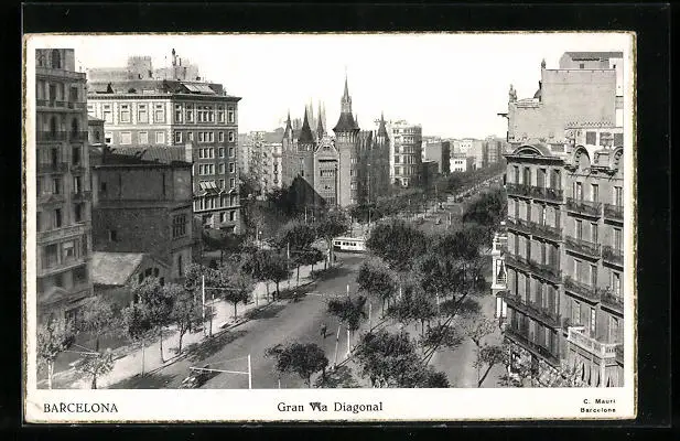 AK Barcelona, Gran Via Diagonal, Strassenbahn