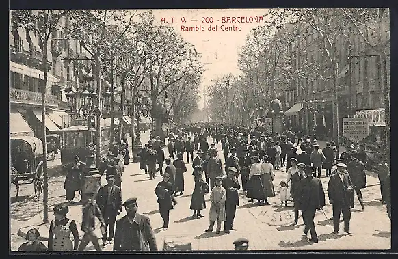 AK Barcelona, Rambla del Centro, Strassenbahn