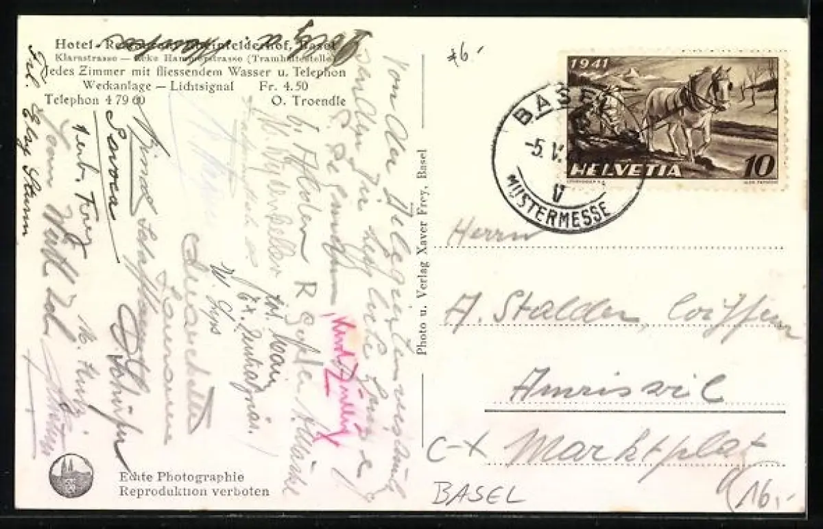 AK Basel, Hotel-Restaurant Rheinfelderhof