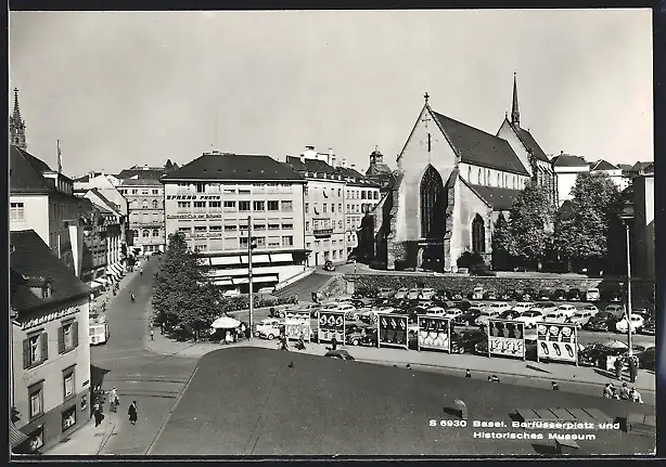 AK Basel, Kirche am Barfüsserplatz und Historisches Museum