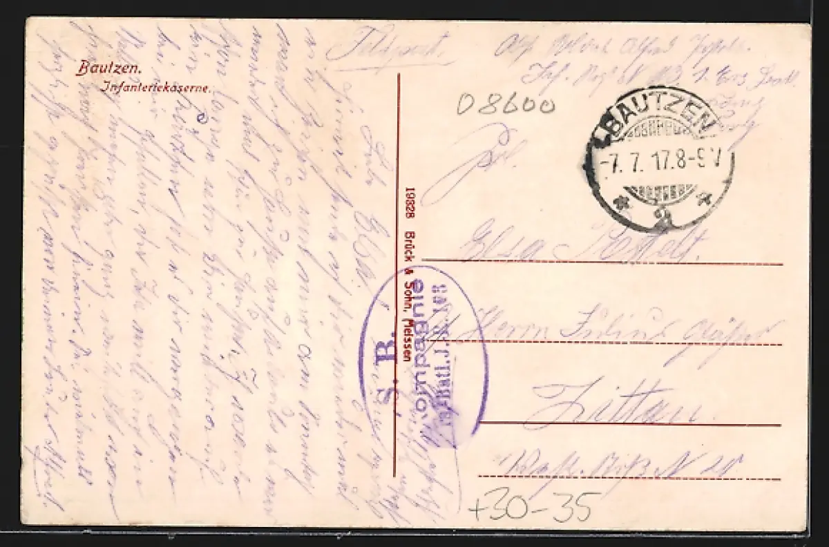 alte Ansichtskarte, gelaufen 1917, Eckknick li. unten, guter Zustand