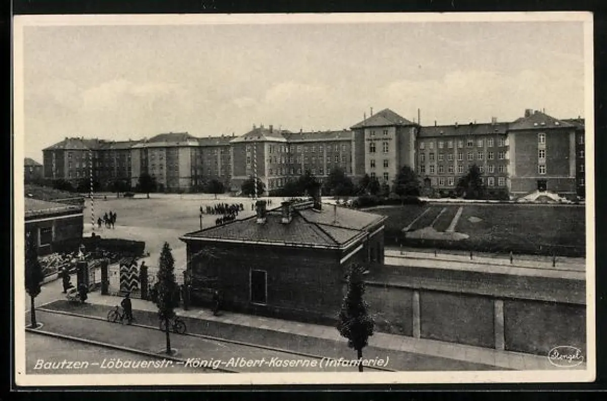 AK Bautzen, König-Albert-Kaserne in der Löbauerstrasse aus der Vogelschau