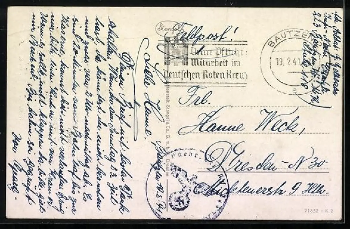 gelaufen 1941, Bugspuren unten mittig u. oben, guter Zustand
