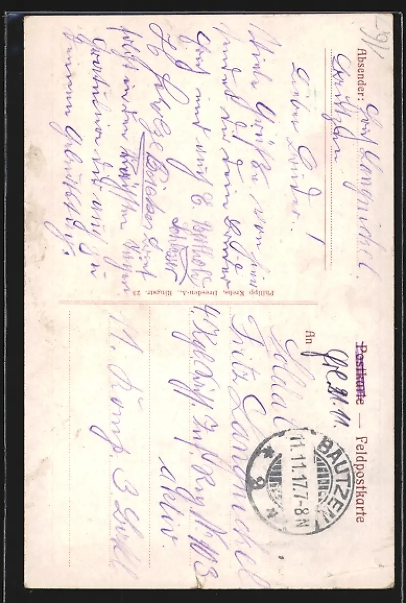 alte Ansichtskarte, gelaufen 1917, Eckknick li. unten, kl. Einriss unten mittig, guter Zustand