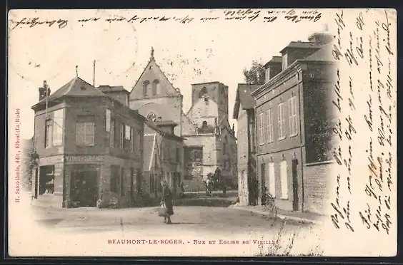 AK Beaumont-Le-Roger, Rue et Eglise de Vieilles